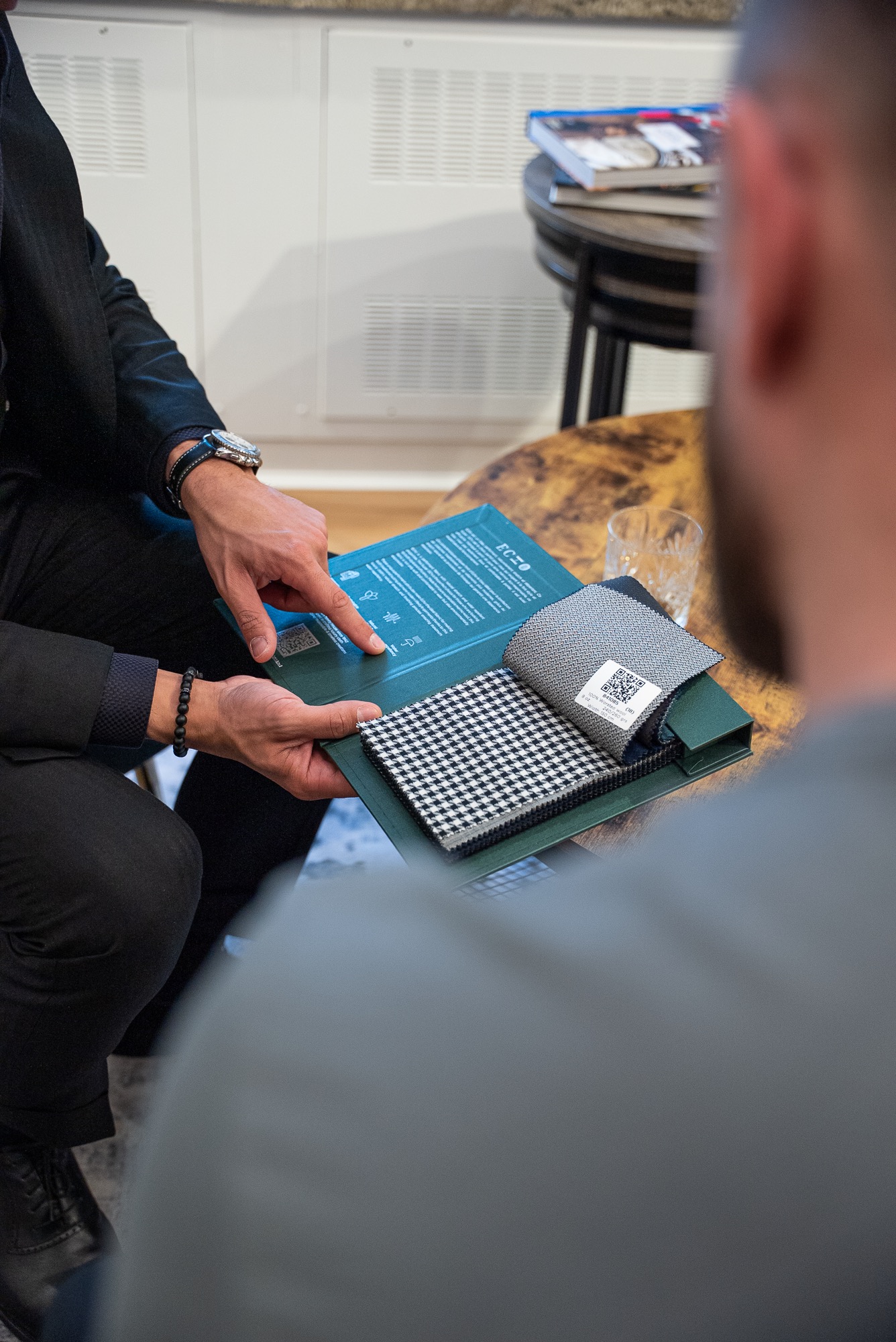 Every great suit starts long before the first stitch. We source only premium fabrics—chosen for their durability, drape, and unmistakable feel—to ensure your garment stands apart. Combined with precise measurements and thoughtful craftsmanship, your suit becomes more than clothing; it becomes a statement of quality from the very first touch.
